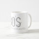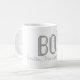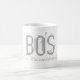 Kaffemuggen har BOS - Förkortning för Logan International Airport, Boston, MA. Grungig urban grå text