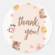 Den här vackra babyduschen Classic Round Sticker har ett charmerande tema för husdjur med söta illustrationer av en ko, en kniv, chick, häst och gris, omgiven av vackra blommor och ett leende sol. Den mjuka pastellformen färg och den vismiska utformningen skapar en varm och inbjudande atmosfär. Besök vår butik för att se hela vår samling av bruna Cute Farm Animal.