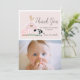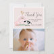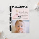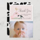 Den här söta och moderna flickans födelsedagskalas tack för att du har ett fotokort med gris, kyckling och ko med en rosa-lada på en rosa med en vit gräns som ram. Den omvända sidan har en vit bakgrund med svart koma mönster. Anpassa efter dina behov. Du hittar matchande produkter i min butik.