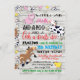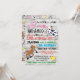 Toppen Söt boskap med roligt funky typsnitt födelsedagsfest inbjudan. Underbar för en pojke eller flicka! En kyckling av gris, ko, häst och baby på en vit tvättat lada-bakgrund. McBoos illustration av hand plockade
