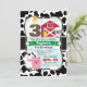 Cute boyröd eller flickröd, svart, vit, rosa, gult, brun, grönt, ko, gris, gult, chick, kyckling, fåruppfödningstema födelsedagsfest inbjudan på svart och vit kowhid-mönster bakgrund. Anpassa den söta, inbjudan med ditt barns namn. Har ett 3:e, 3:e födelsedagsljus än vad som kan vara personlig till ditt barns ålder. Perfekt för baby först, 1:a, födelsedag, småbarn, små barn eller äldre barn. Underbara inbjudan för födelsedagsfest av jordbruksdjur, jordbrukare och land.
