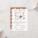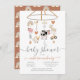 Modern och söt Boskap Baby Shower-inbjudan. Underbar skandinavisk känsla med en ko, ram, gris, roster, get, spåraren, regnbåge, moln och stjärnor som alla hänger på en mobil. Neutralt färg ska vara en pojke eller flicka baby. Terra cotta, dammigt blått grått och vitt.