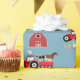 En söt boskap och röd traktorbarnyard är mönster med blå bakgrund. Boskap som omfattas av detta mönster är get, ko, häst, anka, får och gris. Den perfekt pojkens barnyard-design för lantentusiaster.