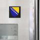 Jackande av arm från Bosnien och Hercegovina. Jackat om Bosnien och Hercegovinas arm antogs 1998 och ersatte den tidigare utformning som hade varit i använda sedan 1992, när Bosnien och Hercegovina blev självständigt, och följde utformningen av den nationella flagga. Den tre spetsiga skölden är specifik och skall symbolisera de tre stora folkgrupperna i Bosnien, liksom också anspelningen på land. Stjärnorna antogs för att ersätta den loppur de lys som hittades på mer uråldriga jacka av arm för att undvika att peka ut den bosniska etnisk tillhörigheten som mest framträdande, och möjligen för att antyda EU.