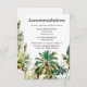 Den här eleganten och det vackra bröllop-inkapslingskortet med vattenfärg har en strand och handflatan träd. Texten kombinerar handskript och sans serif typsnitt för en snyggt och ett modernt utseende. Det här är perfekt för en sommarstrand eller ett tropiskt destinationsbröllop.