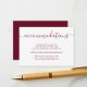 Du kan smita in de här eleganternas burgundykort i dina bröllopsinbjudningar för att få ut gäster från stan som känner till hotellarrangemang, eller gruppkoder. Anpassa enkelt den här moderna onlinen för djurutrymmeskort. Matchande objekt är tillgängliga. Anpassningsbarna begär välkomnande.