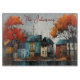 En vit vattenfärg på en rad hus på hösten ge, en fälla... Skärbborden är lätta att byta ut när säsongerna förändras, ge dig ett roligt för att ändra din hemdekoration. Namn kan ändras. AI-assisterad grafik som köpts med kommersiell licens. Bild: RavenPrintableDesign