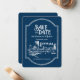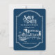 Boston Spara-the-Date är perfekten för ditt offslag bröllop. Det enkla blåvita färg-koordinerar med nästan vilket tema som helst. Och stil blandas lika bra med en chic eller ett minimalistiskt bröllop som med en industriell eller moody estetik.