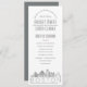 Ett bröllopsprogram med dekorskylintemat för ett bröllop som tar ställe i den vackra staden Boston, Massachusetts. Det här bröllopsprogrammet har en stiliserad illustration av stadens unika skylt med namn under. Detta vilar under din bröllopsdag i ett stil som är öppet för matchning. På motsatt sida finns en mjuk nickel-grått-färg med fler detaljer om bröllop i vit text för att komplettera framsidan. Ett snyggt sätt att välkomna utvandrare till din stad, samtidigt som de ge värdefull information om dina ceremonier i bröllop.