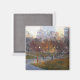 När sol går ut på en falldag på Boston Common väntar en rödvit kvinna i ljuset av en lykta.