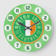 Boston Irish American Southie Clock. Cirkelformgivning i orange och grönt med texten Boston Irish Southie och Celtic knots motifs.