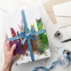 Watercolor art print of the skyline of Boston, Massachusetts, United Stater