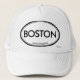 Välkomnande till Boston! Är du från Boston, Massachusetts? Har du en vän eller en familjemedlem som älskar Boston, Massachusetts? Om så, är denna "lägeläge" hatt vad du söker efter! Designen presenterar "Boston" i stor svart bokstäver och "Massachusetts" i mycket liten svart bokstäver som omges av två ovaler, en som är tunn, och en som är tjock.