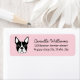 Cute-returetiketter med en illustration av en liten Boston-skräckupplevelse på anpassningsbar färg. Färg i bakgrunden och teckensnittet kan ändras med Zazzles anpassning till verktyg. Standardbakgrund färg: rosa. Idealisk för Boston skräckare älskare och ägare.