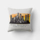 Dekorativ kudde har Boston Massachusetts city skyline silhouette med solnedsatt vattenfärg stänk och latitud och longitud karta koordinater