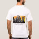 T-shirts har Boston Massachusetts city skyline silhouette med solnedsatt vattenfärg stänk och koordinater för latitud och longitud karta