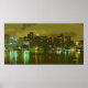 Ljus från kustnära byggnad i Boston shimmer och skapar färglöst, gigantiskt bilder på den stillastående hamnen vatten vid midnatt.