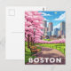 Boston skyline under blomning av körsbärsbärssyste vykort