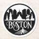 Denna nya svarta och vita illustration av Boston-skylten har många välkända landmärken, däribland byggnaden i huvudstad, anpassningsbarna i torn, Hancock, Old Hancock och Prudential byggnad, samt bron och finansdistriktet Zakim.
