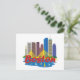 En livfull och konstnärlig återgivning av Bostons skyscraper för namnteckning i stads- och bakbänken stigning ovanför Zakim-bron med segelbåtar som kryssar för stadens blå vatten.