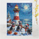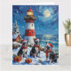 Boston Terrier Christmas Lighthouse Holiday Kort