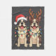 Boston Terrier Christmas Santa Hat Reindeer Lights Fleecefilt