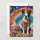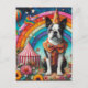 En berömvärd Boston Terrier i en söt utrustning med en cirkus tält i bakgrunden skapade konst