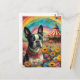 En berömvärd Boston Terrier i fält av vilda blommor med cirkus tält i bakgrunden skapade konst