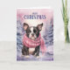 Boston Terrier Dog Merry Christmas Pink Forest Helgkort