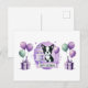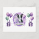 Boston Terrier Grattis på födelsedagen postkort - akvarell lila tryck med ballonger och födelsedagstårta