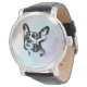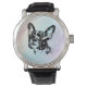 Enkel pennskiss av en Boston Terrier-hund. Chicens svarta och vita skisser på den subtila regnbågsbakgrunden.