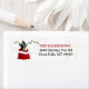 De här returetiketterna har en bild av en söt svart och vit Boston Terrier-hund i en röd och vit julklapp. Bakom hund finns en sträng med färglöst Helgdag ljus. Din anpassningsbar är i rött och svart på högerna. En subtil guld-konfetti-bakgrund ge lite grann jultjusare.