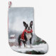 Boston Terrier Hund i Snö jul Liten Julstrumpa