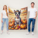 Boston Terrier In Höst löv Thanksgiving Art Fleecefilt
