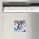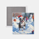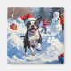 En helgdag med hjärtslitande hund i snö, som bär en julhatt och omges av färgfulla presentlådor. I bakgrunden bygger barn snögubbe bredvid ett Julgran som är täckt av snö och skapar en glatt vinter under. Perfekt för att sprida helgdag och fånga julens magi.