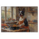 Ge din köksmiljö en rolig och livlig touch med denna Boston Terrier-design som visar en glad hund som lagar mat i en mysig miljö. Med sina uttrycksfulla ögon, kompakta kropp och lekfulla personlighet ger detta konstverk energi och charm till alla utrymmen.