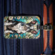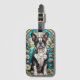 Boston Terrier-bagageetikett med svart och vit Boston Terrier som är artificiellt tillverkad i ett fönsterläge av faux-nedfläckad.