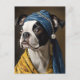 Boston Terrier med pearring Earring Fine Art Parod Vykort