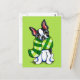 Klicka på "Läs mer" om du vill ändra bakgrundsbilden färg.Boston Terrier Vintertemed Art som gör unika semesterhälsningar, presenter och dekorationer. Konst och design av Andie/Off-Leash Art™. En del av hennes Hundar och katter i uppsamlingen av scarves och hattar.