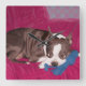 Boston Terrier Restririer på Red Couch - Digital P Fyrkantig Klocka