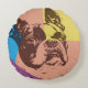 Pop Art Effect Boston Terrier. Enkel återknapp effekt Boston Terrier illustration i gult, blå rosa och lila färg bakgrund. Den här teckningen ger en underbar gåva till hundälskare eller någon som kärlek Boston Terrier.