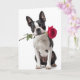 Det här vackra kortet visar en söt Boston Terrier som håller en ensam röd ros - en oemotståndlig symbol för kärlek och hängivenhet. Medan det är perfekt för hundälskare, talar dess budskap om ren tillgivenhet till alla som uppskattar en hjärtlig och glädjefull Alla hjärtans dag. Ett charmerande sätt att säga "Jag älskar dig för evigt".