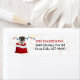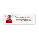 De här returetiketterna har en bild av en snygg svart och vit Boston Terrier-valp i en röd och vit julklapp. Bakom hund finns en sträng med färglöst Helgdag ljus. Din anpassningsbar är i rött och svart på högerna. En subtil guld-konfetti-bakgrund ge lite grann gnistra.
