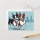 Originalteckningar av två Boston Terriers, ett sällsynt färgad Boston, som båda klämmer av ett rött utslag. Hitta den här teckningen även på affärskort med husdjur: