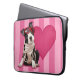 Moderiktig boston terriervalp med stor rosa hjärta som målas av konstnären Maryline Cazenave.