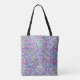 This vibrant and intricate design features floral and leafy motifs in a kaleidoscopic arrangement with a palette of pink, teal, blue, and green. Designed by Afaf Khalil