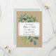 Vintage botaniskt spara datumkortets visningar som du anger i bröllop på ett unikt sätt i bläcksvart block och kalligrafibrev, på en bakgrund av målade vattenfärgade löv av grönt, grenar, ferns och löv. En spekulerad kraftsbakgrund tillför strålningskarpa. Spara datumen tillbaka till grönten för helsidesbild.