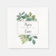 Lush grönt botaniska bröllop-blöjor har namn i kalligrafi av chic, omgiven av vintage stil vattenfärgsblad av grönt.