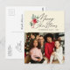 botanical black script christmas holiday card vykort