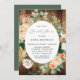 Vackert inbjudningskort för möhippa med en elegant modern neutralt pastellfärgad botanisk blommigt grön ram i mjuka jordtoner av persika, orange, mjuk , och mängder av grönt från sage grönt till ljusa och djupare gröntar. Din personlig visas i en förhöjd typografiklayout som placerar hedersgästen framför och mitt.